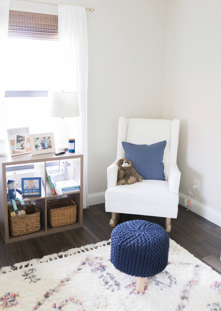 We sourced a beautiful, yet comfortable, rocking chair from Pottery Barn Kids. The classic rocking chair legs paired with the modern silhouette of chair complimented the organic, modern style our Momma-To-Be loved.