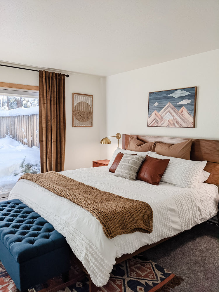 The primary bedroom is my favorite transformation in this Incline Village vacation home. I wanted to give the owner's a comfy & cozy escape that felt like all their own.